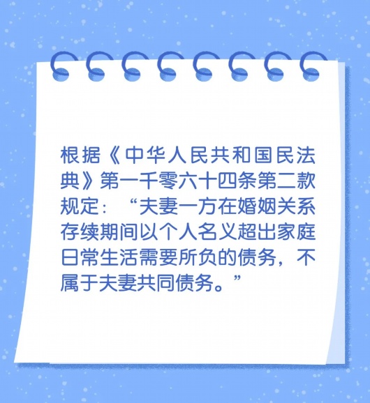 也就是说,在婚姻关系存续期间,夫妻一方以个人名义所借的钱款,如果超出了家庭生活需要,并非服务于家庭开支,那么另一方是不需要承担债务的。这一点在以往的司法解释中也有所体现。