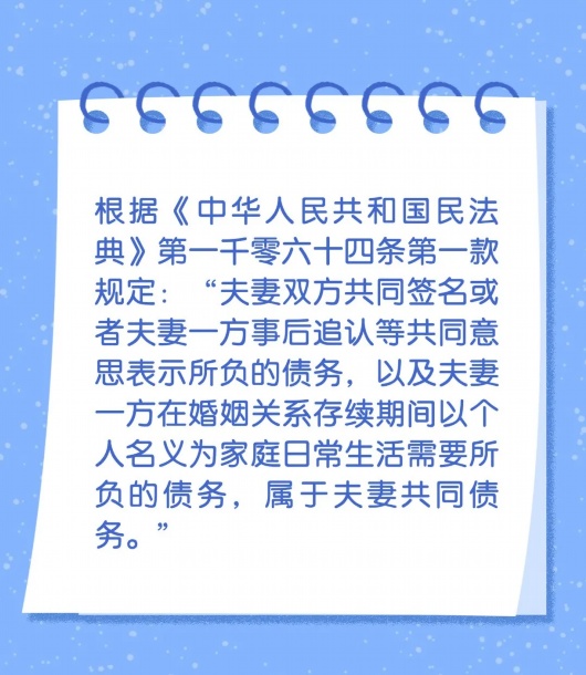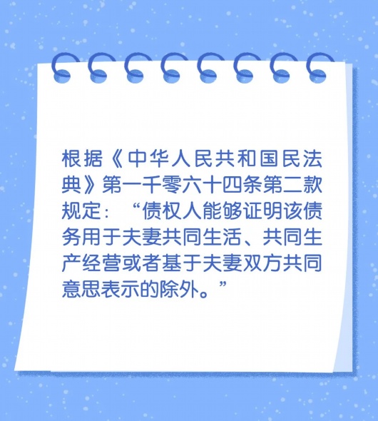 两人结为夫妻之后不仅会产生“共同财产”也可能会产生“共同债务”一起还房贷、还车贷自然理所应当那么,当丈夫在外欠债累累不知情的妻子需要共同承担吗?让我们从一个故事说起……小明和小花一起来沪打拼,经过三年恋爱,终于买房结婚了。婚后,两人十分恩爱,生下了可爱的孩子,收入虽然不高,但日子过得简单幸福。